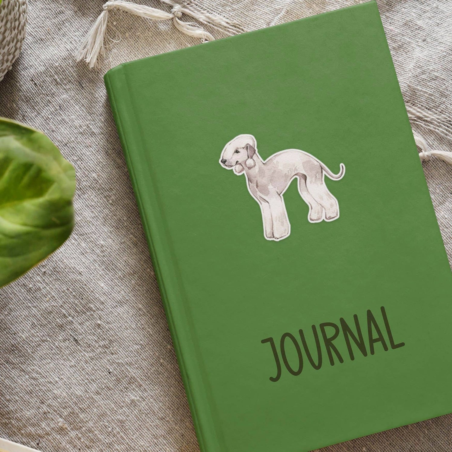 This die cut bedlington terrier dog sticker measures 2.6 x 2.4 inches and has a matte finish.