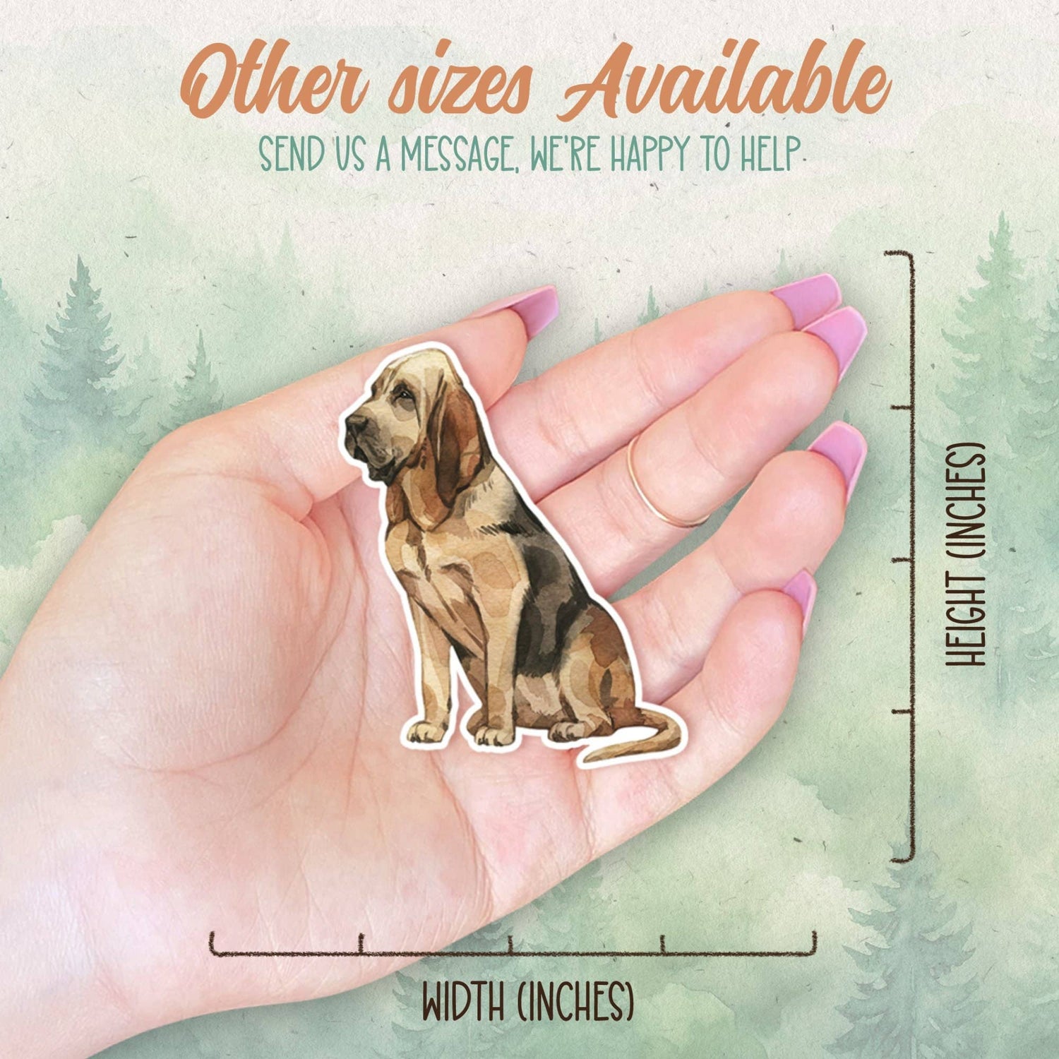 This die cut bloodhound dog sticker measures 2.3 x 2.8 inches and has a matte finish.