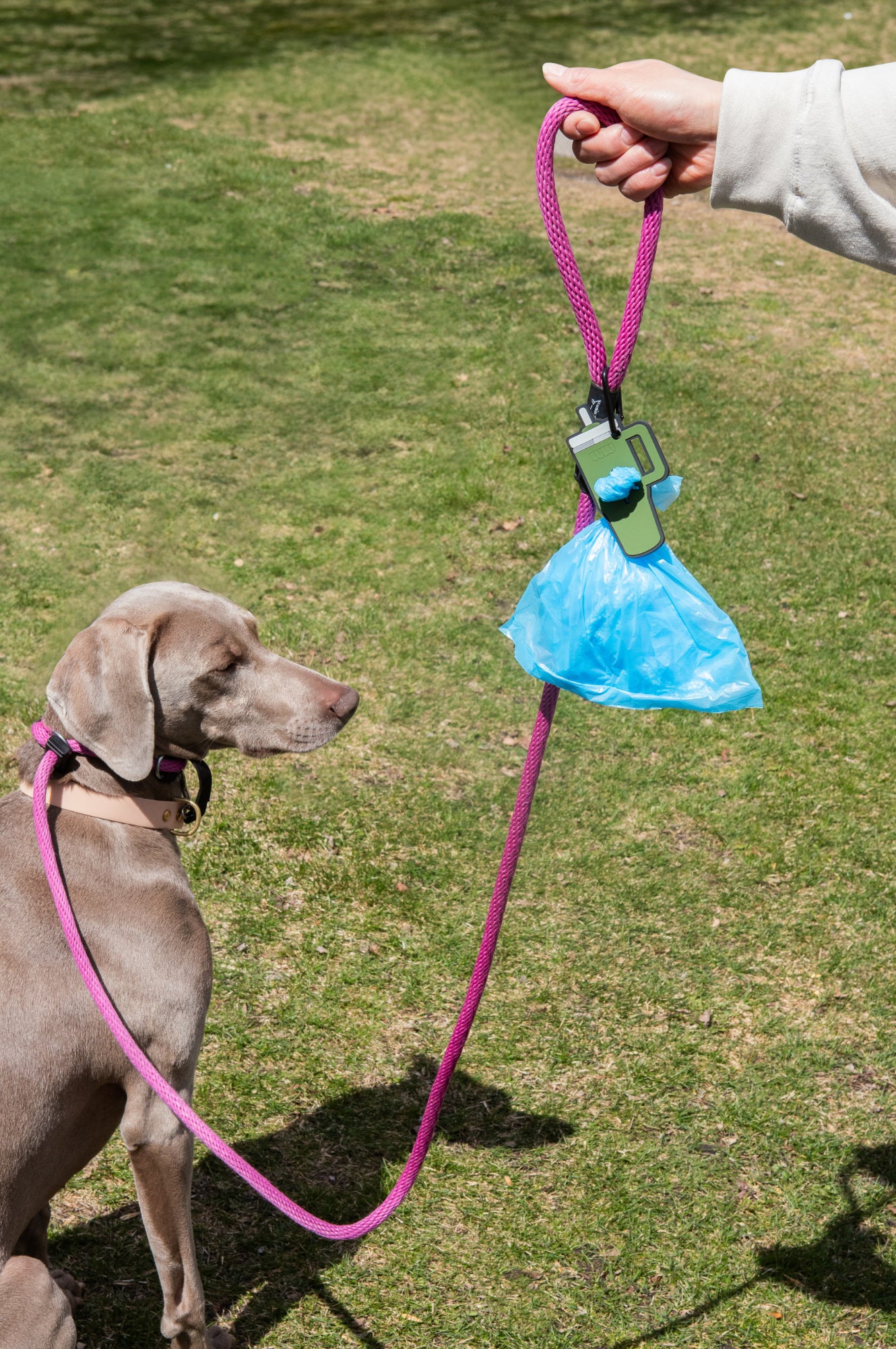 Let's face it, no one likes to carry their used (and stinky) waste bags in their hands when walking the dog. it's messy, unhygienic, and just plain gross. Poo Buddy holds onto your waste bag and conveniently clips onto your leash. Made of thick durable rubber so your hands stay clean. Keep your walks simple and your used poo bags where they belong - our of your hands! Why your customers will love it: - 3.5in x 2in - Includes carabiner - Durable, lightweight, waterproof and tear-proof rubber - Metal clip attaches to the D-ring of your dog's leash