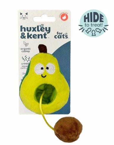 Crinkle plush cat toy with removable pit to hide treats with catnip