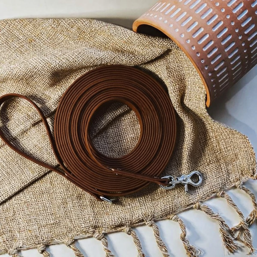 This product is made with a vegan leather alternative called Biothane. Our Biothane is made in the USA and is waterproof and stink proof. The Biothane has a soft coating that has the look and feel of leather without harming any animals. It is matte in appearance and will hold its flexibility at extremely low temperatures.