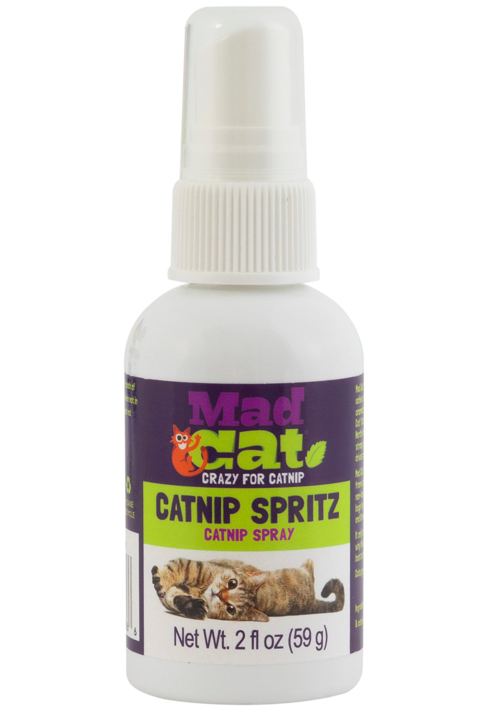 Mad Cat® Frisky Spritz Catnip Spray can spice up a kitty’s favorite toys and places. Use it as an enticing fragrance to introduce your cat to a new bed or carrier. Safe, non-toxic, and dye-free. Made with pure North American catnip oil.