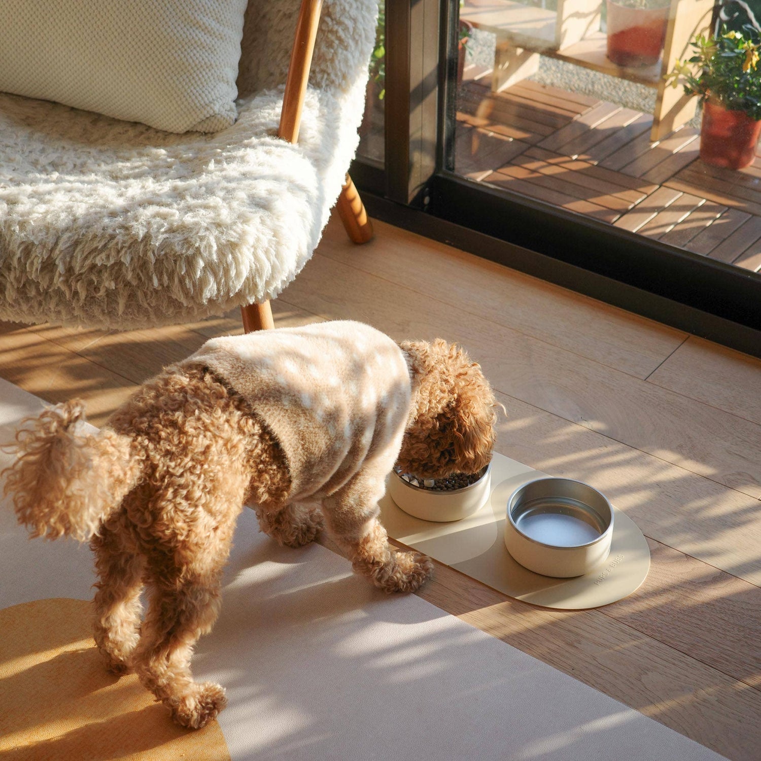Inspired by the concept of puzzles, the Puzzle Placemat is an unique design created for the modern home. Custom produced in handpicked Pantone colors and cut into a beautiful wave shapes, you won't find these mats elsewhere. The mats can be combined like a puzzle for 2 bowls, or be used separately in different rooms for water. The neutral colors ensures the mats fit nicely into any home aesthetic.