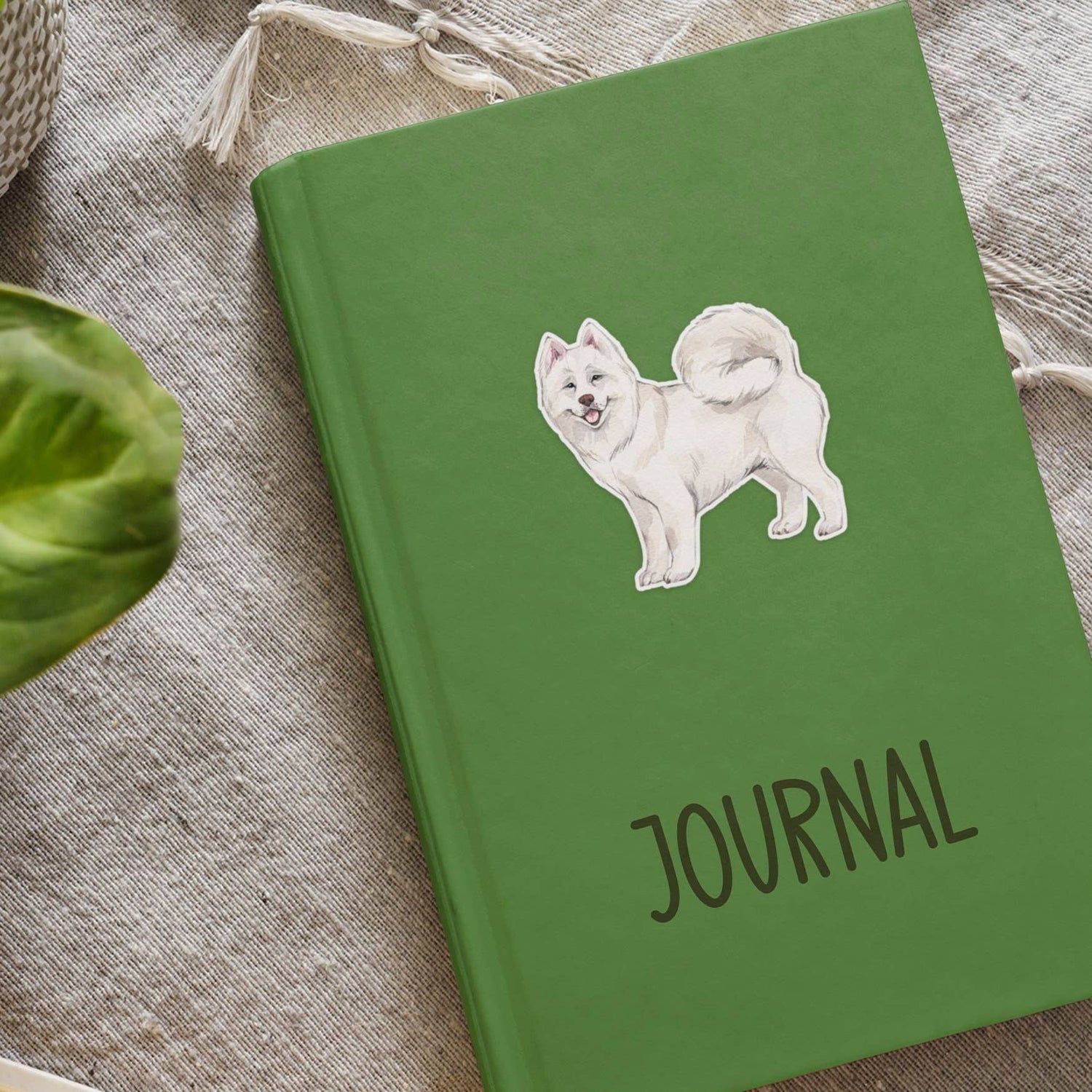 This die cut samoyed dog sticker measures 2.5 x 2.5 inches and has a matte finish.