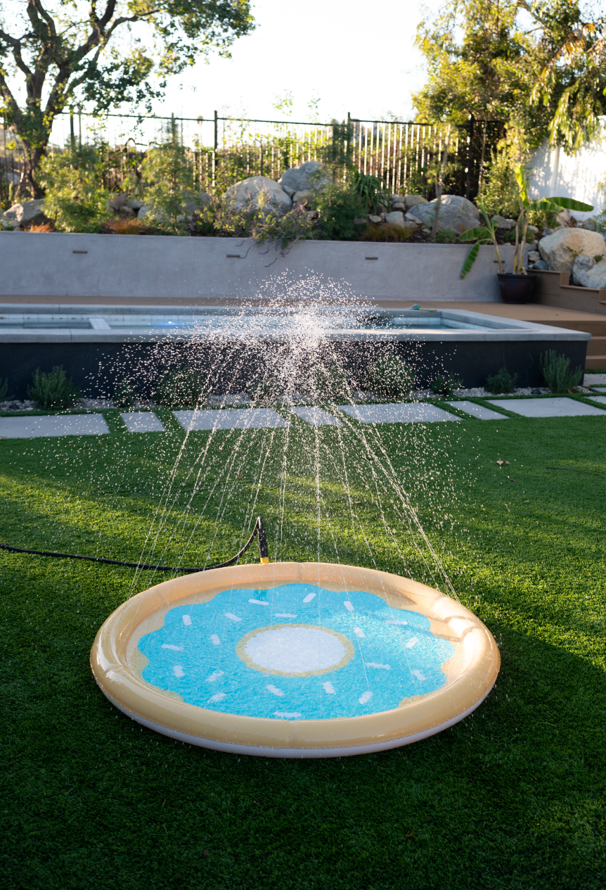 Easily connects to a hose to fill and spray water into the air for summertime fun. The 59" diameter makes it suitable for dogs of all sizes. Made of 35 mm pvc (bpa and pthalate free). Easily folds for storage.